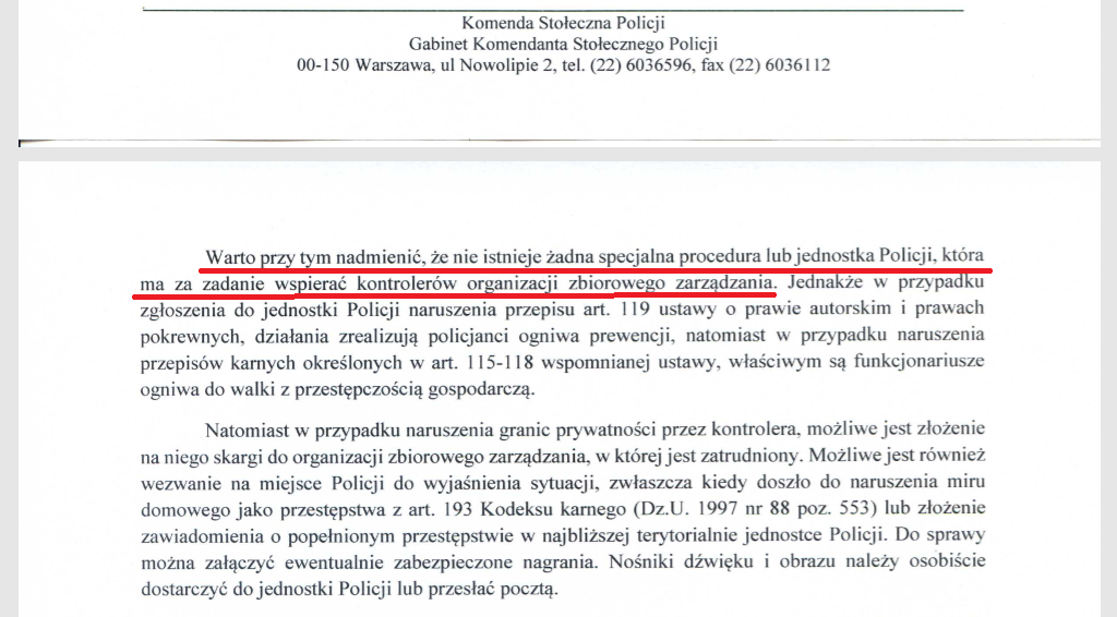 Zarówno w całej ustawie o prawie autorskim, jak i ustawie o OZZ, jak i w samym zezwoleniu Ministra, nie znajdziecie słowa o kontrolach – tak jak już pisałem w poprzednim wpisie, ponieważ takiego prawa, jako narzędzia administracyjnego OZZ nie posiadają.